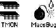 Bevorzugt wird dabei der TMON- oder MacsBug-Debugger eingesetzt (Abb. B.1.2). Beide sind keine Sourcecode-Debugger, sondern arbeiten auf Assembler-Ebene. Sie werden automatisch installiert, wenn sie sich beim Systemstart im System Folder befinden. Gerufen werden die Debugger in folgenden drei Fällen: