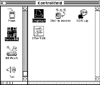 [14] Zum Zeitpunkt der Implementierung stand die Version 6.0.3 des Systems und die Version 6.1 des Finders zur Verfügung. Die aktuelle Version des AppleTalk-Treibers .MPP ist 52, der .XPP-Treiber liegt in der Version 1.2 vor. AppleShare wurde in der Version 2.01 verwendet. Gedruckt wurde mit einem Druckertreiber der Version 5.0.