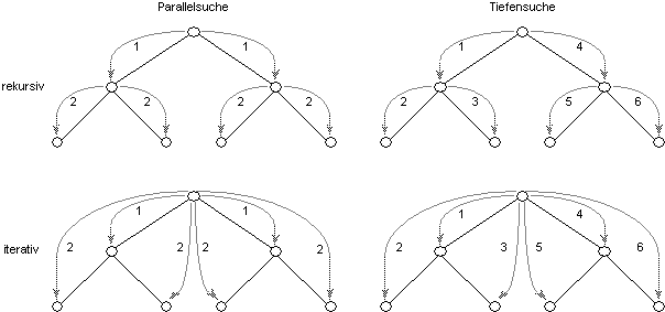 Abbildung 4.1: Erkundungsstrategien in Bäumen