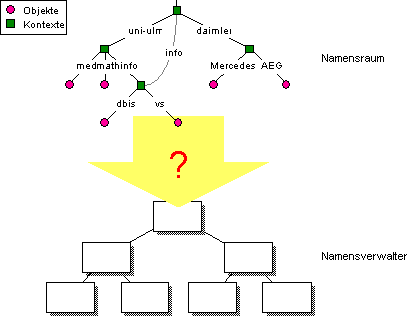 Abbildung 4.8: Problem der Verteilung hierarchischer Namensräume auf hierarchische Verwalternetze