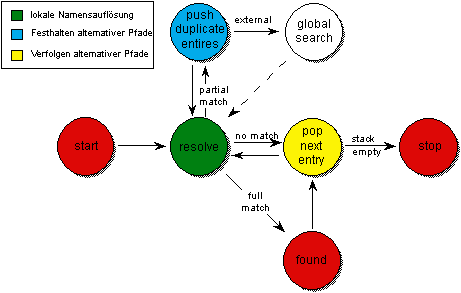 Abbildung 4.7: Zusammenspiel verschiedener Verfahren zur Auflösung von Namen