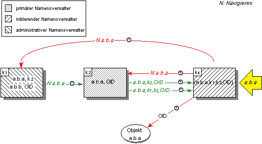 Abbildung 5.8: Beispiel für die Namensauflösung bei Replikation von Namensverwaltern